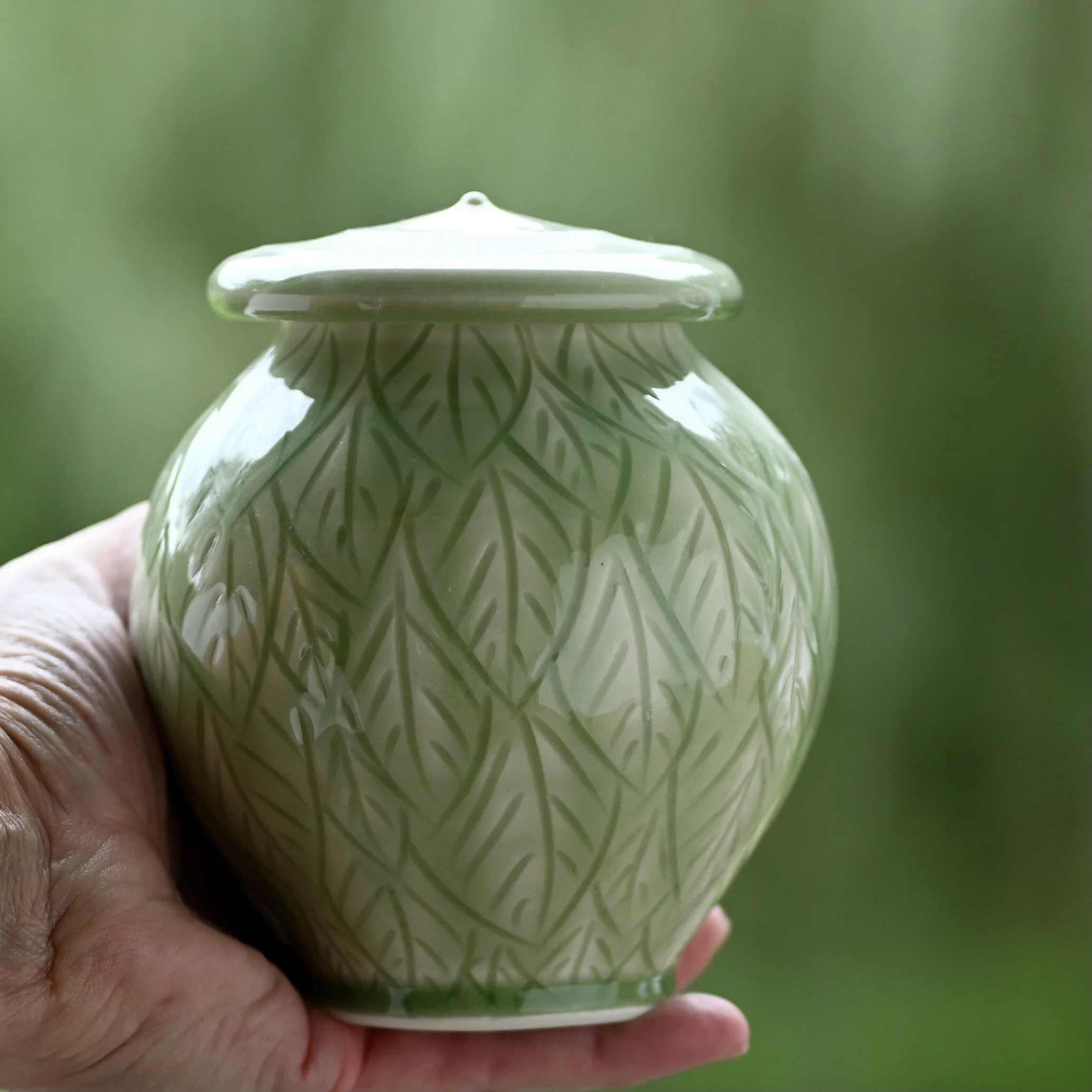 Your choice of handcrafted urns for your loved ones Categories: All Biodegradable Urns Companion Urn Gift Cards Individual Urns Keepsake Urns Locking Lid Urns Medium Urns One of a Kind Urns Seconds Small Urns Soul Circle Stone All | Biodegradable Urns | Companion Urn | Gift Cards | Individual Urns | Keepsake Urns | Locking Lid Urns | Medium Urns | One of a Kind Urns | Seconds | Small Urns | Soul Circle Stone | Quick View Custom Listing for Joan $240.00 Sold Out Quick View Soul Circle Stone Keepsake Urn 1 $60.00 Quick View Soul Circle Stone Keepsake Urn 2 $60.00 Quick View Soul Circle Stone Keepsake Urn 3 $60.00 Quick View Soul Circle Stone Keepsake Urn 4 $60.00 Quick View Celadon Ripples Keepsake Urn $120.00 Sold Out Quick View Fields of Grass Keepsake Urn with Knob $95.00 Quick View Hibiscus Flower Keepsake Urn $95.00 Quick View Circles of Love, Keepsake Urn, with Knob $145.00 Quick View Peaceful Green Keepsake Urn with Knob $145.00 Quick View Fields of Grass Keepsake Urn with Knob $145.00 Quick View Celadon Green Keepsake Urn Sale Price: $65.00 Original Price: $95.00 Sale Quick View Floral Vine Urn, Celadon Green, Small Size 1 $295.00 Quick View Floral Urn, Celadon Green, Small Size $265.00 Quick View Floral and Vine Urn, Celadon Green, Small Size $265.00 Quick View Deep Blue Galaxy Urn, Keepsake Size $135.00 Quick View Fields of Grass Urn, Keepsake Size $135.00 Quick View Spring Leaves Keepsake Urn $135.00 Quick View Keepsake Urn, Pure White $125.00 Quick View Keepsake Urn, Blue Sky $145.00 Quick View Tall White Urn with Leaf Pattern, Individual Size $595.00 Quick View White on White Petal Pattern Urn, Individual Size $750.00 Quick View Blue Galaxy Urn, Individual Size $595.00 Sold Out Quick View Spring Leaves Individual Urn $595.00 Quick View Fields of Grass Urn, Individual Size $595.00 Quick View Deep Blue Galaxy Urn, Medium Size $425.00 Quick View Spring Leaves Medium Size Urn $425.00 Quick View Fields of Grass Urn, Medium Size $425.00 Quick View Pure White Urn, Carved and Faceted, Medium Size $450.00 Quick View Tranquil Waters Urn, Green, Medium Size $375.00 Quick View Peaceful White Oval Urn, Medium Size $375.00 Quick View Tranquil Waters Urn with Knob, Green, Medium $375.00 Quick View Tranquil Waters Urn with Knob, Green, Individual Size $495.00 Quick View Spring Leaves Urn Small Size $225.00 Quick View Fields of Grass Urn, Small Size $225.00 Quick View Blue Waterfall, Small size $195.00 Quick View Blue Waterfall, Small Size $195.00 Quick View Footed Urn, Turquoise, Keepsake Size $175.00 Quick View Peaceful Footed Urn, Cream Colored, Keepsake Size $175.00 Quick View Memorial Soul Circle Stone $50.00 Quick View Gift Card from $25.00 Quick View Biodegradable Urn, Roses $795.00 Quick View Biodegradable Urn, Lilacs, Tall $825.00 Quick View Biodegradable Urn, Americana Quilt Pattern, Individual Size $695.00 Quick View Biodegradable Natural White Urn, Herringbone Pattern $425.00 Quick View Biodegradable Urn, Endless Circles, Natural Color White, Individual Size $420.00 Quick View Biodegradable Urn, Wild Flower Field, Natural White, Medium Size $325.00 Quick View Biodegradable Urn, Simplicity, Natural White, Small $150.00 Quick View Biodegradable Urn, Natural White, Octagonal, Keepsake $120.00 Quick View Biodegradable Tiny Keepsake Urn, Natural White $65.00 Quick View Custom Biodegradable Urns from $250.00
